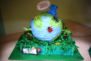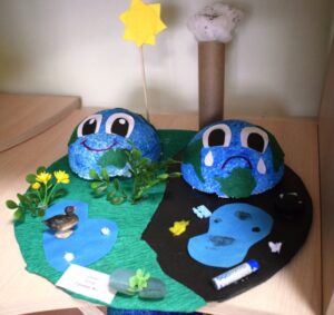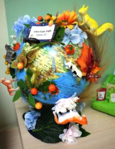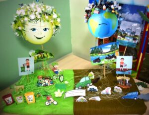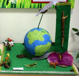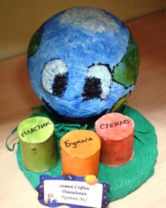 В детском саду проходит выставка совместного творчества «Эко-планета». Цель данной выставки заключается в формировании экологической культуры воспитанников. Любовь к родной природе и ответственность за её сохранение — это то, на что родители с детьми делали акцент, когда готовили материал для выставки.